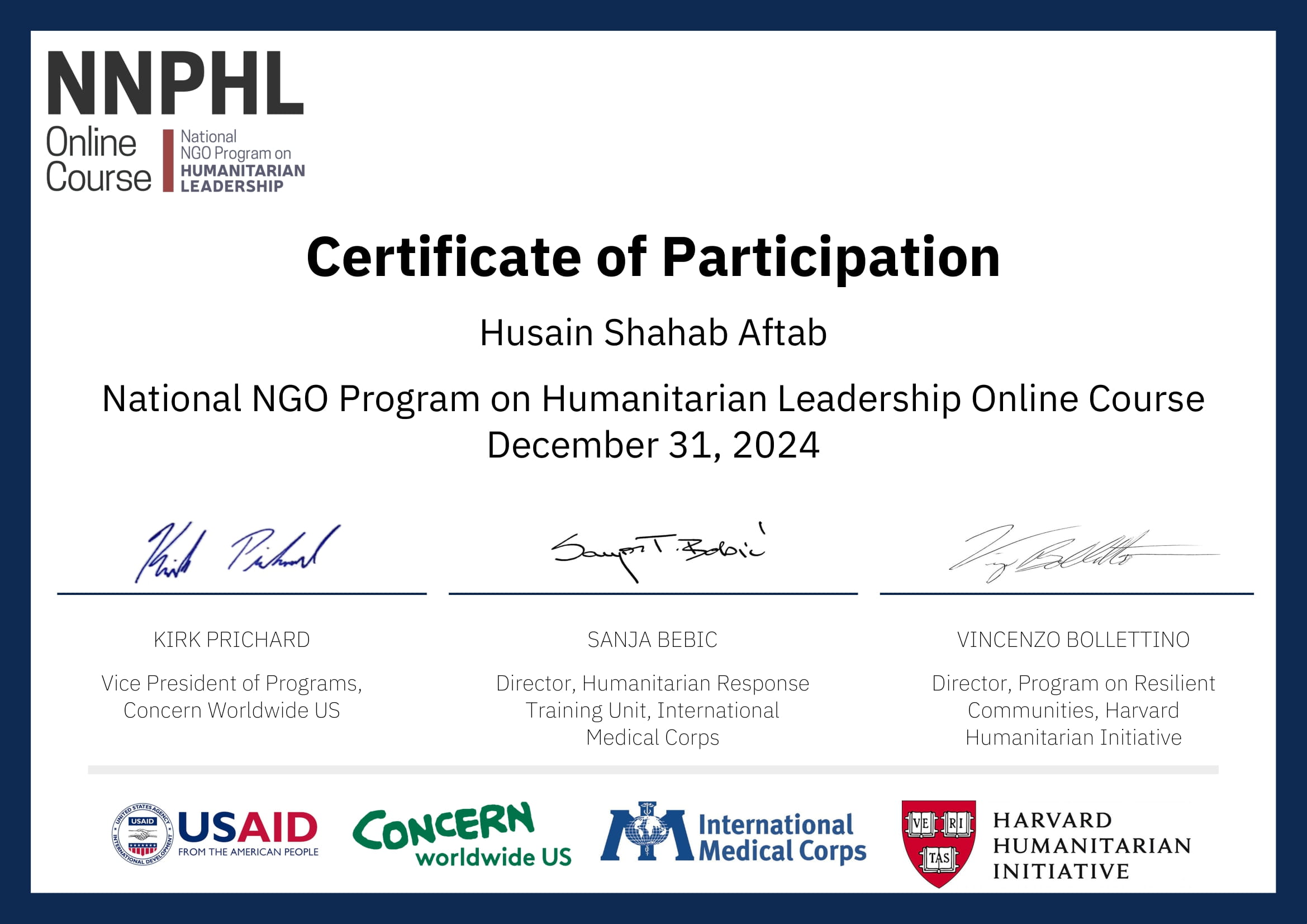 Mr. Husain Shahab Aftab has passion for acquiring knowledge, which led him to achieve over 2000 qualifications, certifications, accreditations from world rated and globally recognized institutions. It is here in this section of CREDENTAILS his Record of Achievements, Participation and proof of knowledge in possession is displayed.